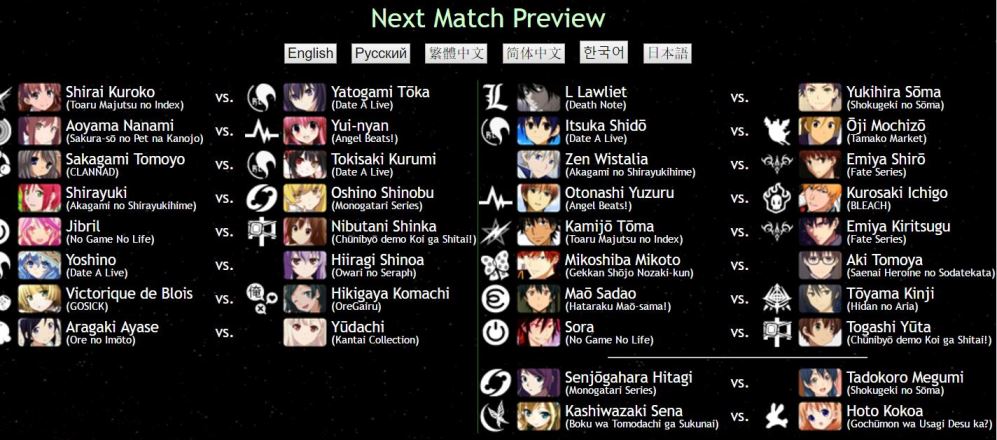 O campeonato que começou com 128 personagens masculinos e femininos divididos em grupos de 4, entra nesta fase com os classificados dos 4 primeiros períodos já disputados até agora, sendo um total de 64 personagens divididos novamente em grupos de 4.