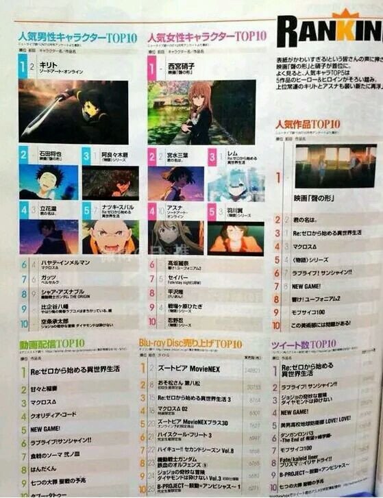 Como vocês vêm acompanhando aqui no Anime Xis, os filmes Koe no Katachi e Kimi no Na wa. vêm sendo dois grande sucesso nas bilheterias japonesas e isso acabou influenciando no ranking de popularidade de animes e personagens da Revista Newtype.