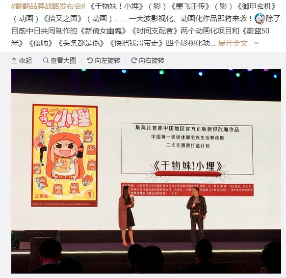 Pois é, parece que a China não quer apenas investir em animes, mas também pensa em continuar adaptando series japonesas para doramas de TV. De acordo com o blog chinês de entretenimento Gamersky.com, a Shueisha anunciou um novo acordo de licenciamento permitindo que as companhias internacionais poderão adaptar algumas publicações da editora japonesa, incluindo uma produção para série Live-Action de TV de Himouto Umaru-chan, que será lançada na China no decorrer de 2017.