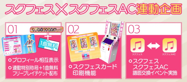 A partir de Janeiro 2017, as pessoas que jogarem no árcade um certo número de vezes poderão receber cards PR “School Unity” aleatório para o sistema Love Live! School Idol Collection.