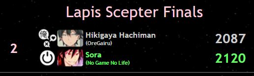 Com isso, Sora vence a divisão masculina da ISML 2016 e fica com o Lapis Scepter (sim, este é o nome do título) e mais este chart na galeria de vencedores, que conta com a sua inseparável irmã mais nova, Shiro: