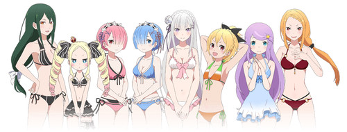 As candidatas para a “Eleição para Rainha” são as seguintes: Emilia, Ram, Rem, Beatrice, Felt, Priscilla, Anastasia e Crusch.