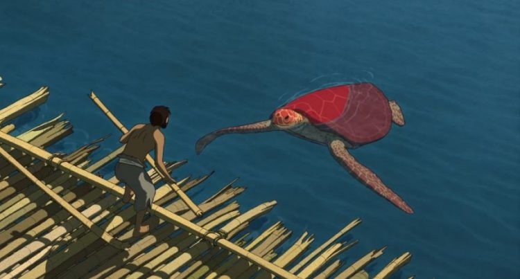 Após sobreviver a um naufrágio, um homem se vê em uma ilha completamente deserta. Lá ele consegue se manter, através da pesca, e tenta construir uma jangada que lhe permita deixar o local. Só que, sempre que ele parte com a embarcação, ela é destruída por um ser misterioso. Logo ele descobre que a causa é uma imensa tartaruga vermelha, com quem manterá uma relação inusitada.