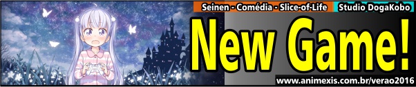 A primeira temporada de New Game! estreou nas TVs japonesas em Julho, entre os animes da Temporada de Verão 2016. Com um total de 12 episódios produzidos pelo Estúdio Dogakobo. Recentemente, um OVA sendo o 13º episódio foi anunciado. A nova temporada ainda não tem previsão de estréia, mas a nossa central de animes continuará atenta para novidades.