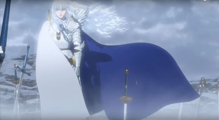 O anime vai acompanhar Guts com a sua aparência “Black Swordsman”, o que só é revelado em partes do manga que não chegaram a ser animadas, sendo que esta aparência é brevemente sugerida no primeiro e último episódio da série anime de 1997. Não se esqueçam que a série anime não foi totalmente fiel ao manga, chegando mesmo a não animar um dos personagens e a não retratar algumas das cenas mais sangrentas e impressionantes.