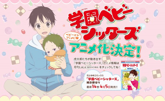 Foi anunciado nesta quinta-feira (23/03) que uma adaptação para Anime TV do mangá de Hari Tokeino, Gakuen Babysitters, recebeu sinal-verde. A editora japonesa Hakusensha revelou nesta sexta-feira (24/03) o primeiro visual apresentando os principais personagens do anime Ryūichi e Kotarō. A série terá um total de 12 episódios e será lançada no primeiro trimestre de 2018, nos canais Tokyo MX, MBS e Animax.
