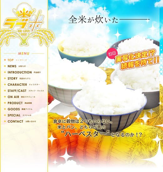 Já no anime Love Kome -We Love Rice-, que estreará em Abril, temos uma grande mudança: Os personagens foram substituídos por tigelas de arroz [ Link ]