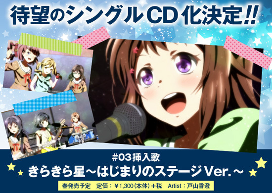 Já a conta oficial no twitter para a série BanG Dream está anunciando que vai ser lançado o single CD da canção “Twinkle Twinkle Little Star ~Starting Stage Ver.~”, interpretada pela protagonista Kagami (eu vou comprar) [ Link ]