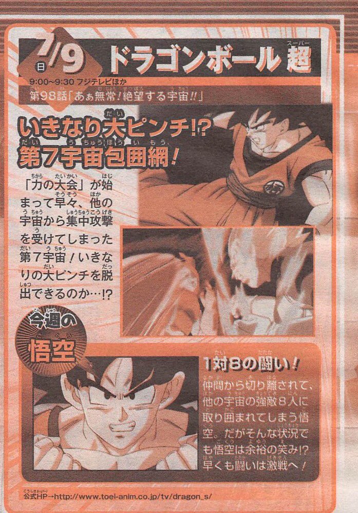 Nesta semana foram divulgadas informações sobre o novo arco que se inicia neste próximo domingo. Para este arco temos leve mudança no visual, uma possível nova transformação de Goku e alguns Spoilers do episódio 98!