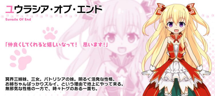 Ayuru Ōhashi como Yuracia of End, irmã mais nova de Patricia que tem uma personalidade despreocupada e brilhante.