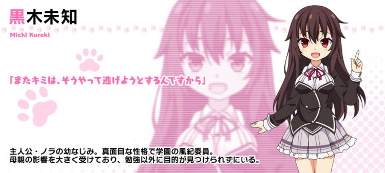 O amigo de infância e aluno de honra de Nora, Michi Kuroki é a chefe do comitê de moral pública da escola e também é amigo de Yuuki Asuhara, que age como um gyaru, mas é um confiável confidente.