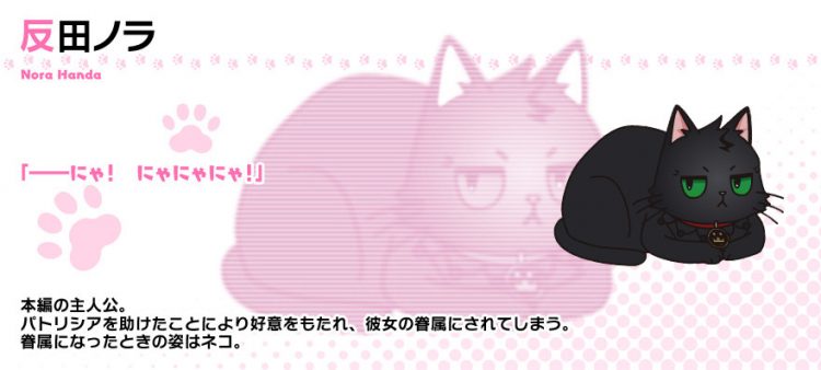 Ayaka Asai como Nora Handa, personagem principal da história original. Ele ajudou Patricia, ganhou seu favor e acabou se tornando subalterno de Patricia. Sua forma subalterno é um gato.