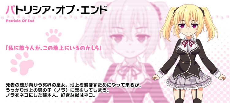 Natsumi Takamori como Patricia of End, uma princesa do submundo. Ela vem para o mundo humano para destruí-lo, mas lá ela se apaixona por Nora.