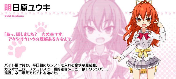 Atsumi Tanezaki como Yuuki Asuhara, que é um ano mais jovem na escola do que Nora e é um gyaru. Ela tem uma personalidade brilhante e tem muitos amigos e também trabalha vários trabalhos a tempo parcial.