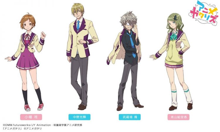 O site oficial para o novo anime de TV de produção original da DMM Pictures, Anime-Gataris (Anime Stories), revelou as canções-temas e a data de estréia do anime.