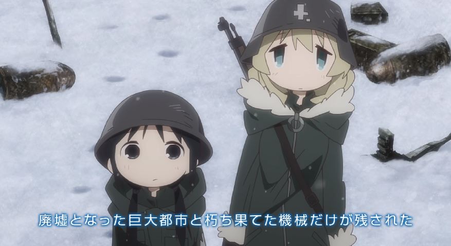 A civilização está morta, mas Chito e Yuuri ainda estão vivas. Então eles saltam a bordo da sua amada moto Kettenkrad e vagueiam pelas ruínas do mundo que elas conheciam. Dia após dia sem esperança, elas procuram a sua próxima refeição e combustível para a sua moto. Mas enquanto as duas estiverem juntas, mesmo uma existência tão sombria como a delas tem um raio ou dois de sol, estejam elas a comer a sua sopa ou a caçar peças de máquinas para mexerem. Para duas meninas num mundo cheio de nada, as experiências e os sentimentos que as duas compartilham dão-lhes algo para viver…