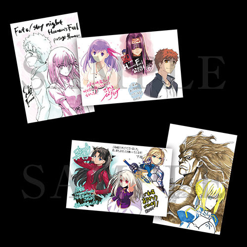 O site também revelou que as pessoas que participaram de exibições nos cinemas no Japão receberão itens de bônus diferentes nas primeiras sete semanas após o lançamento do filme. As pessoas que forem assistir as exibições durante a primeira semana do filme receberão um dos dois conjuntos de dois cartões postais com ilustrações especiais da Type-Moon e ufotable.