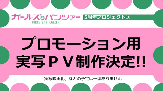 No livestream realizado neste sábado, foi divulgado que a franquia vai receber um vídeo promocional em live-action. O anúncio especificamente afirmou que não há planos para fazer Girls und Panzer em um filme live-action. A equipe irá revelar mais informações sobre o vídeo de promoção em uma data posterior.