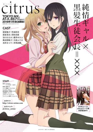 o anime Citrus vai ao ar em Janeiro pelos canais Tokyo MX, AT-X e BS Fuji, entre os Animes da Temporada de Inverno 2018. Também foi revelado um novo visual: