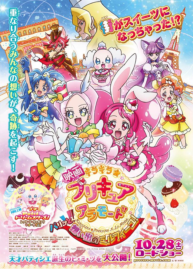 O site também possui uma linha de tempo da série, desde que o anime primeiro estreou em 2004 até o mais recente filme Eiga Kirakira ☆ Precure a la Mode: Paris to! Omoide no Mille-Feuille! (imagem acima).