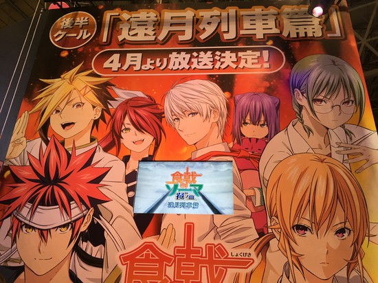 Em uma apresentação de palco no evento Jump Festa 2018 realizado no fim de semana, foi revelado que a terceira temporada de Shokugeki no Souma, intitulado Shokugeki no Souma: San no Sara (Food Wars! The Third Plate), retornará em Abril para o novo arco “Tōtsuki Ressha” (Tōtsuki Train). O evento também revelou que o anime receberá um novo OVA com um volume do mangá no próximo ano, após o novo arco da terceira temporada estrear.
