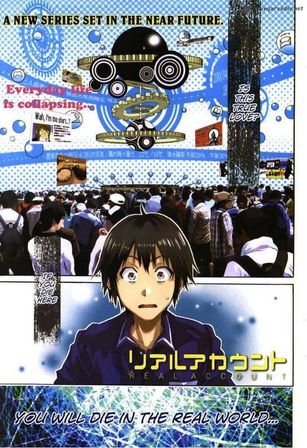 O mangaká Watanabe (Kono Kanojo wa Fiction Desu) e o escrito Okusho lançaram Real Account na Bessatsu Shonen Magazine em 2014, mas depois a série foi transferida para Weekly Shonen Magazine em Janeiro 2015. A Kodansha lançou o 17º volume compilado do mangá em Novembro passado e lançará o 18º volume em 17 de Janeiro.