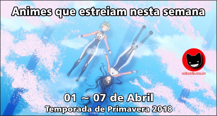 Aproveitamos esta data especial para divulgarmos a vocês os primeiros animes que estrearão na Temporada de Primavera 2018, começando a partir de hoje, 1º de Abril (e não é mentira) até o próximo sábado, dia 07.