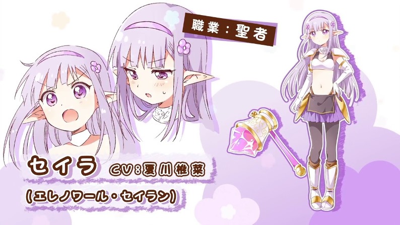 O site oficial para o anime TV de produção original do Studio Gokumi (Tsuredure Children, Yuuku Yuuna wa Yuusha de Aru, Toji no Miko), Endro~!, revelou nesta quinta-feira (30/08) um novo vídeo promocional que apresenta a personagem Seyla (Elnowar Seylan, soletração não confirmada), dublada por Shiina Natsukawa. Seyla é uma jovem muito séria e serve como um homem forte da party. Ela é uma elfa sagrada e é boa em cuidar dos outros, mas é ruim no trabalho doméstico. Ela tem visão ruim, mas não usa óculos e não pode usar um arco.