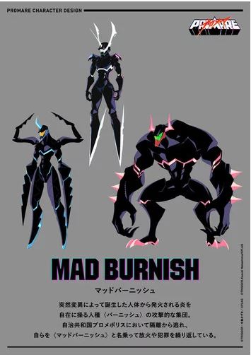 O site também revelou projetos para Mad Burnish. Burnish é uma raça de seres empunhando chamas que apareceram de repente neste mundo e os Mad Burnish são uma organização de Burnish.