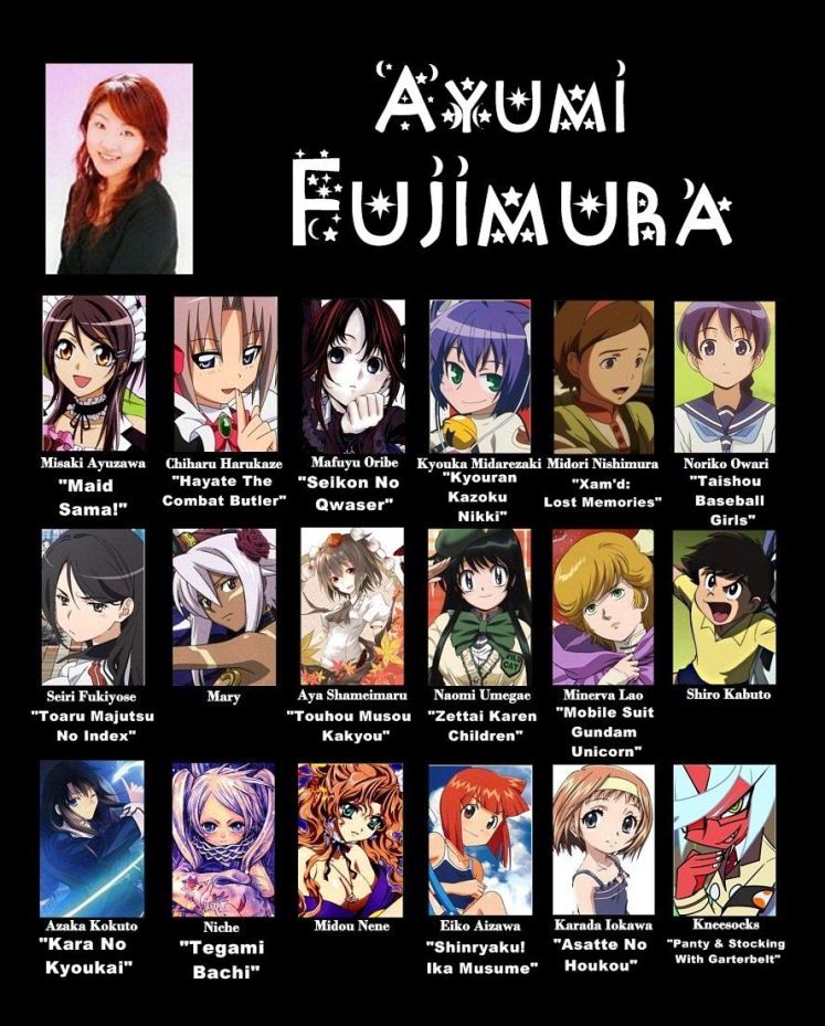 Ayumi Fujimura tem 36 anos de idade e é natural de Tóquio. Ela entrou para o mundo do entretenimento em 2004, começando a dublar no ano seguinte.