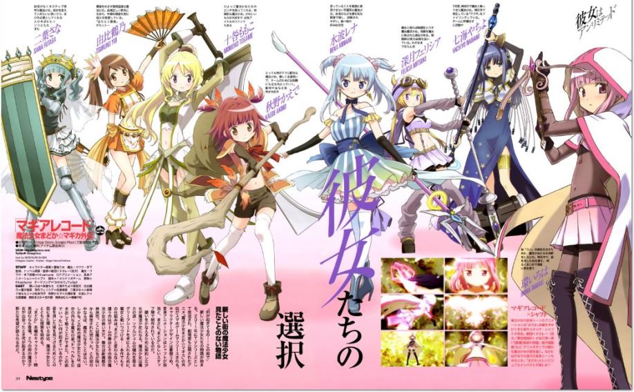 Já o anime de produção original Puella Magi Madoka Magica foi exibida na TV japonesa entre Janeiro e Abril de 2011, depois foi lançado dois filmes compilados (lançados em Outubro de 2012) e um filme inédito em Outubro de 2013. A série também possui diversos mangás.