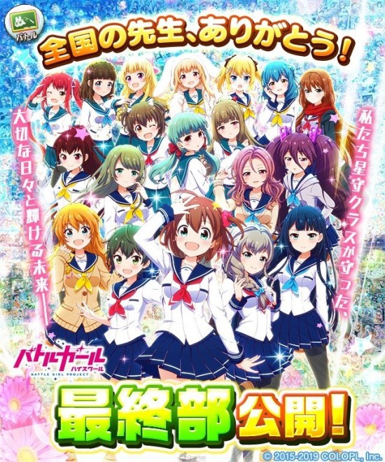 A conta oficial do Twitter para o jogo de smartphone Battle Girl High School da COLOPL anunciou na sexta-feira (31/05) que o jogo terminará em 31 de Julho. Os jogadores não poderão acessar o aplicativo após essa data. O jogo terá um evento de colaboração com o jogo Alice Gear Aegis da COLOPL neste verão.