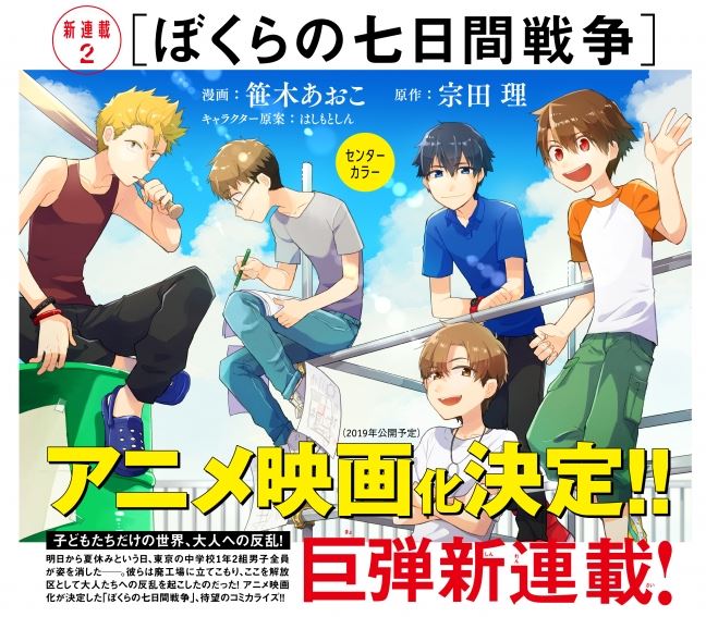 O site da revista Monthly Comic Gene da Kadokawa está listando desde a sexta-feira (14/06) que o mangá de Sasaki Aoko, Bokura no Nanokakan Sensou (Our Seven-Day War), terminará na edição de Agosto da revista que será lançada no Japão em 13 de Julho.