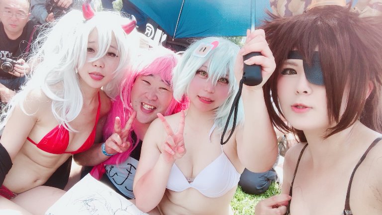 O calor insuportável do verão japonês continuou a brilhar no palco do Comiket 96, testando a perseverança dos muitos cosplayers enquanto tentam manter uma atitude positiva, provavelmente um feito bastante fácil, considerando todos os trajes alegres (e ocasionalmente sexy) e de muitos usando tecidos bem leves… ou menos tecido ainda.