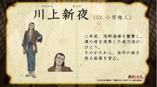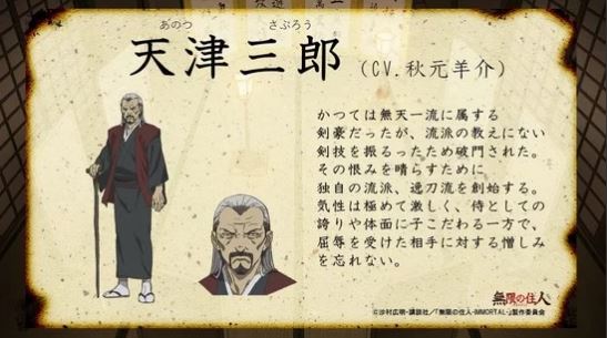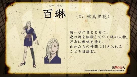 A conta oficial no Twitter para Mugen no Junin: Immortal, o novo anime que adapta o mangá de Hiroaki Samura, Blade of the Immortal (Mugen no Junín ou em português: Blade, a Lamina do Imortal), revelou nesta sexta-feira (13/09) nove novos nomes para o elenco.