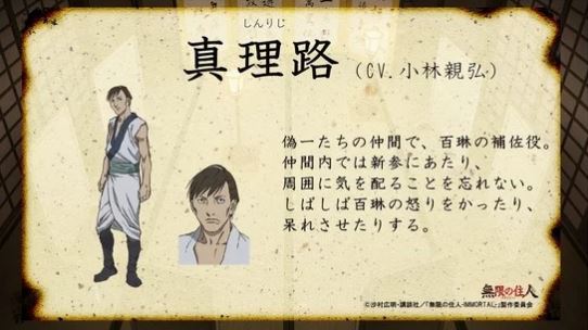 O vídeo promocional acima também anuncia que os dois primeiros episódios estrearão no dia 10 de Outubro em todo o mundo (exceto em algumas áreas) e apresenta os personagens Manji, Rin Asano, Kagehisa Anotsu, Taito Magatsu, e Makie Otono-Tachibana.
