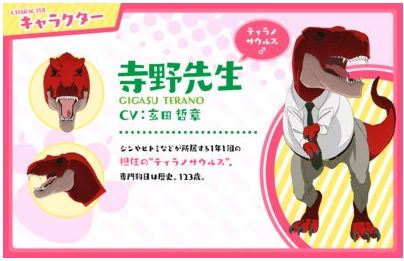 Tessho Genda como Gigasu Terano-sensei, professora de história de 123 anos e professora de sala de aula da classe 1-1 de Jin e Hitomi