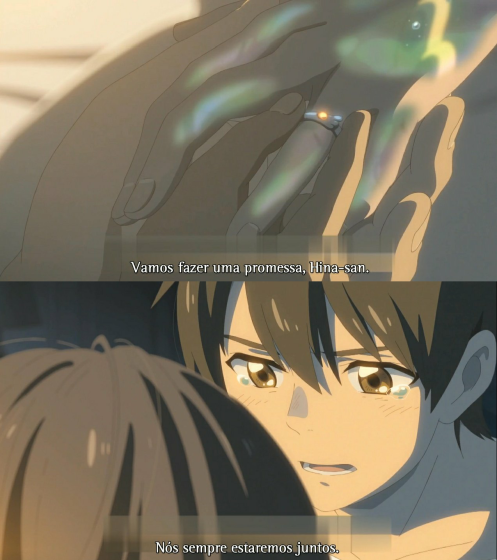 Bom sou suspeita falar desses dois pontos, mas caramba é pedir muito que o próximo filme tenha Radwimps de novo? ^^ Quando eu soube da notícia que seria essa banda de novo fiquei ainda mais animada com o filme e como resultado vi que mais uma vez essa parceria do Shinkai com a banda foi certeira, nossa que trilha sonora maravilhosa, não me canso de ouvir (fica a dica aí a banda, as músicas são legais).