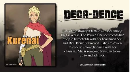 Fontes: Site do anime Deca-Dence, Comic Natalie, Funimation via ANN