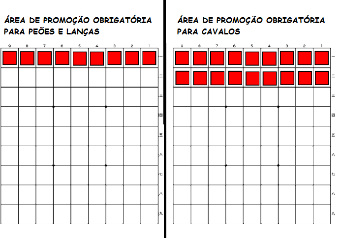 Peões e Lanças são obrigados a serem promovidos quando alcançam a última fileira. Já os Cavalos são obrigados a serem promovidos quando alcançam a penúltima ou última fileira.