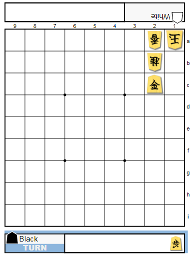 - Não pode ser reposto na mesma coluna que você tenha outro Peão (a não ser que tal Peão já esteja promovido). Na primeira foto deste artigo, o Sente está com Peões em todas as colunas. Por isso só poderá repor o Peão capturado quando promover ou perder um Peão de pelo menos uma coluna (e a Reposição precisará ser feita na coluna disponível);