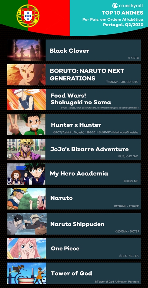 Globalmente, nossa comunidade gasta aproximadamente 85 minutos por dia assistindo suas séries favoritas na Crunchyroll. Confira abaixo os 10 títulos mais assistidos no Brasil em ordem alfabética, contabilizando views do 1º trimestre de 2020 (temporada de inverno):