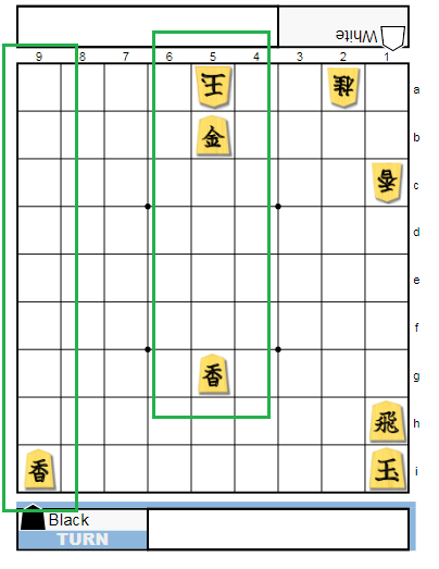 No primeiro caso (primeiro quadrado verde), a Lança está dominando a coluna. No segundo caso, a Lança dá suporte ao General de Ouro para que o mesmo dê mate no Rei adversário. E no terceiro, a Lança está ameaçando a Torre, que não pode sair do lugar sem deixar o Rei exposto. E caso a Torre capture a Lança, o Cavalo tomará a Torre.