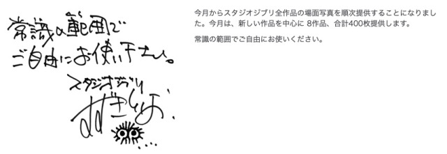 Abaixo a mensagem direta do produtor da Ghibli, Toshio Suzuki : “Por favor, use-as livremente dentro do escopo do bom senso.”