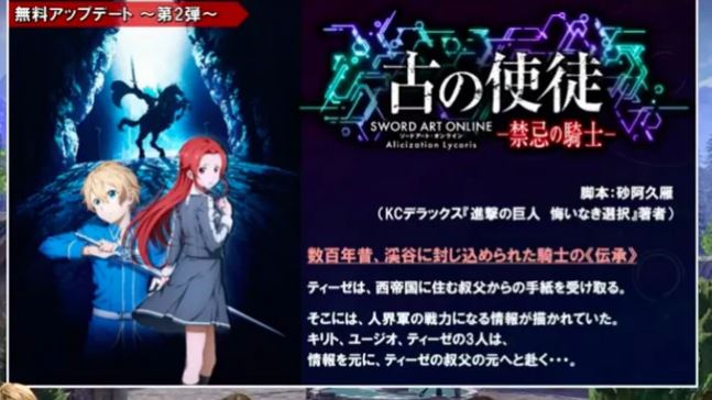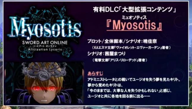 A Bandai Namco Entertainment revelou no domingo (27/09), durante um livestream no evento online Tokyo Game Show 2020, que ele vai liberar quatro atualizações gratuitas e uma atualização de DLC paga intitulada “Myosotis” para o game Sword Art Online: Alicization Lycoris. A autora da novel Violet Evergarden, Kana Akatsuki, está escrevendo os cenários para uma das atualizações gratuitas e para a atualização paga.