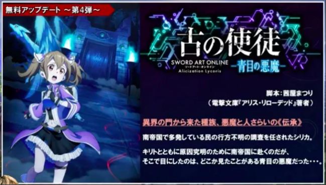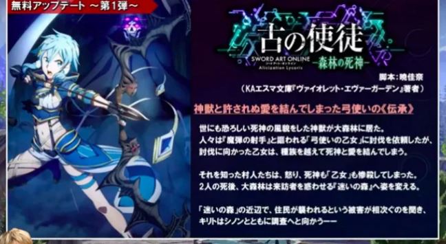 As atualizações gratuitas se concentrarão em Sinon, Tiese, Selka e Silica. Essas atualizações gratuitas começarão a ser lançadas neste inverno japonês. Kana Akatsuki está escrevendo a atualização gratuita da história sobre Sinon e Gun Snark (Attack on Titan: No Regrets) está escrevendo os scripts para a atualização gratuita sobre Tiese. Matsuri Akaneya (autor de Alice Reloaded) está escrevendo os scripts para as atualizações gratuitas sobre Selka e Silica, e também está escrevendo a atualização paga “Myosotis” junto com a Akatsuki.