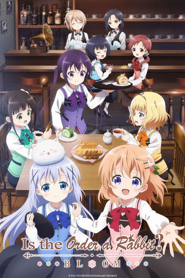 - Sinopse: “O charmoso elenco de Is the Order a Rabbit? volta para encantar o público com muito café, muitos coelhinhos e muita fofura! Adaptado do mangá yonkoma homônimo, Is the Order a Rabbit? BLOOM traz de volta Cocoa, Chino, Rize, Chiya, Tippy e todas as suas garotas favoritas da Rabbit House, servindo mais das situações engraçadas e adoráveis que as tornaram tão amadas. Seja na escola ou em seu ponto de encontro habitual, as frequentadoras do Rabbit Café certamente vão te conquistar em Is the Order a Rabbit? BLOOM!“