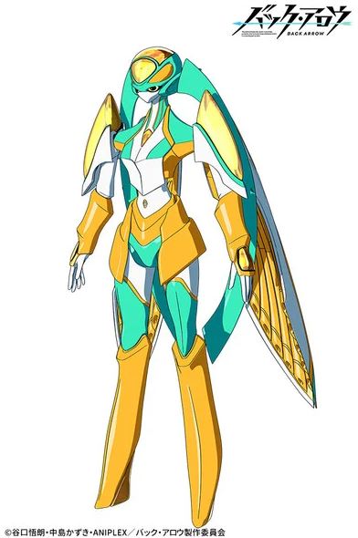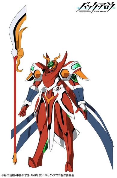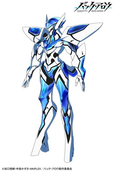 O site também mostrou “Briheight”, o mecha que o protagonista titular Back Arrow pode manifestar com sua força de convicção. Hidetaka Tenjin projetou o Briheight. De cima para baixo, abaixo estão o Briheight Muga, Ryuju, Shadoh e Gigan: