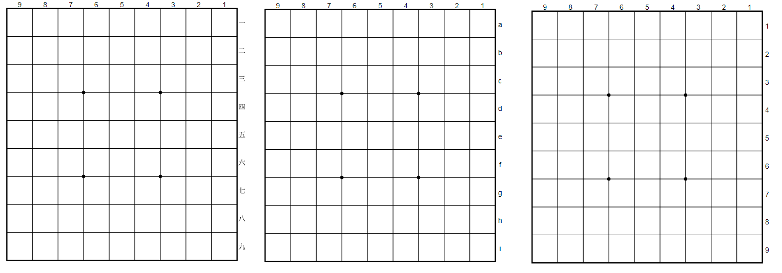 Logo, a primeira casa no canto inferior direito pode ser chamada de “1九”se usarmos a primeira forma, “1i” na segunda e “1-9” na terceira. Todas estão corretas.