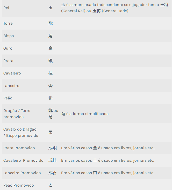 No Shogi, não usamos sinais para indicar xeques ou mates.